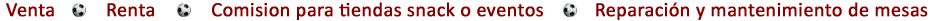 | Empresa establecida con mas de 20 años de experiencia, dedicados a la fabricación y comercialización de mesas de futbolito y ping pong. |