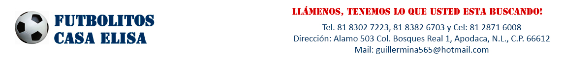 Tel. 81 8302 7223, 81 8382 6703 y Cel. 81 2871 6008 Alamo 503 Col. Bosque Real 1, Apodaca, N.L., C.P. 66612, Mail: guillermina565@hotmail.com |